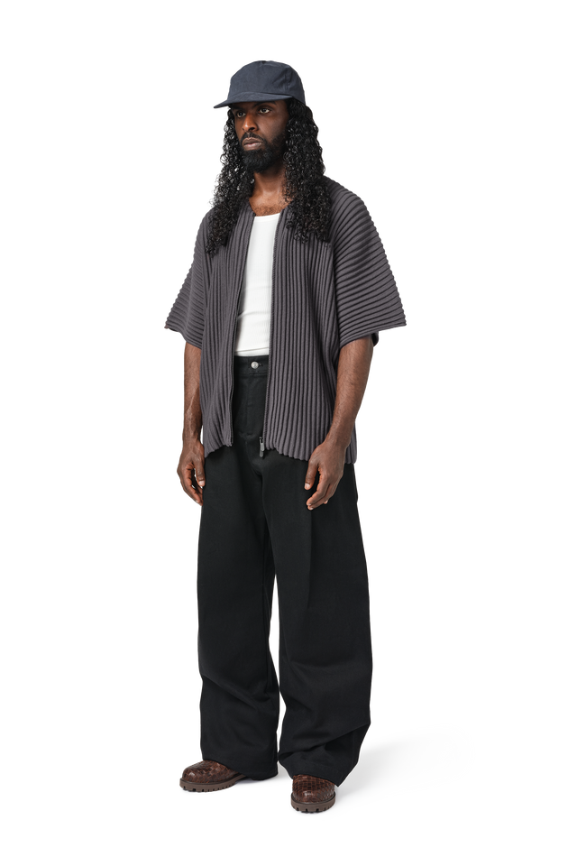 The Ribbed Kimono Top is our new development for the season. Made from a cotton mix, this top has a flowy shape that is airy and soft to touch.